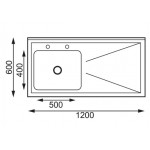 Plonge inox - AISI 304 - 1200 (L) x 600 (P) x 900 (H) mm - Avec égouttoir - Bac à gauche