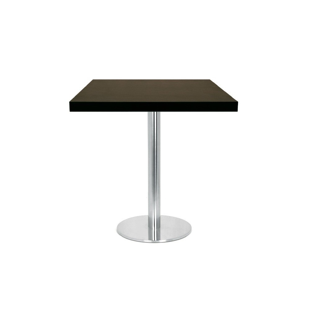 Table de restaurant - base ronde ultra plat en inox brossé avec plateau carré au choix